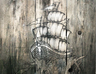 Da wir unser Schiff ja mehr oder weniger zwei Dimensional aufbauen werden, sind die Bilder auf dem unser Schiff in einer Bucht steht, von Lisa gemalt und hängen an der Wand in der Kabine .. : )